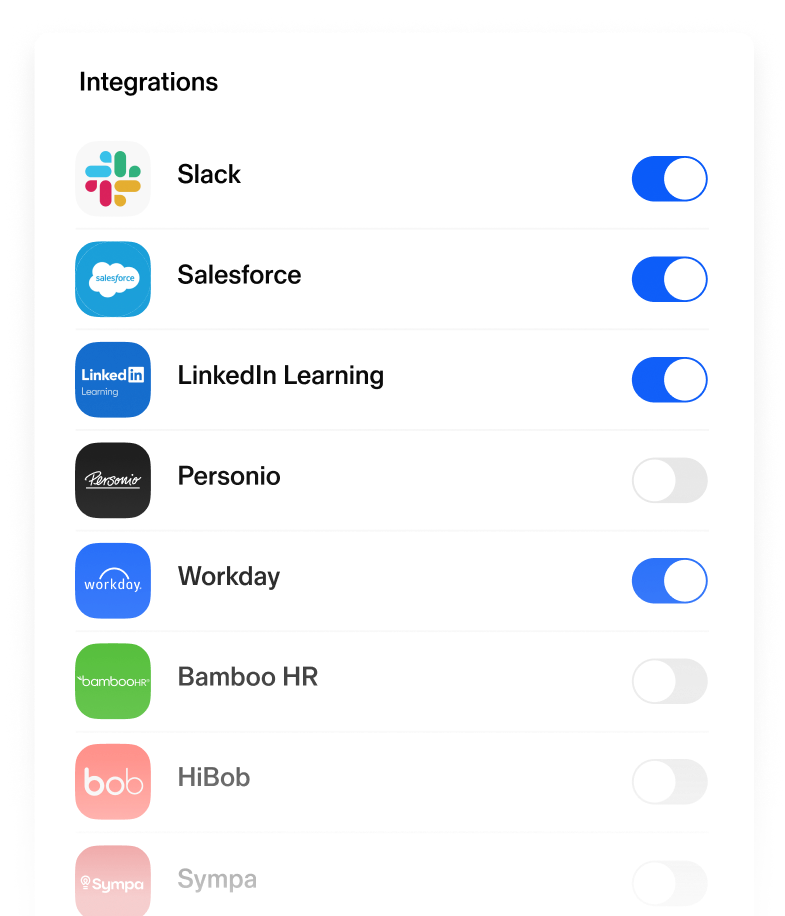 Amplify new and existing leaders in real-time. With Sana’s HR system integrations and custom user attributes, you can trigger leadership programs automatically based department, seniority level, promotion status, and more.